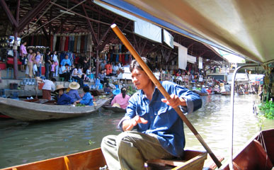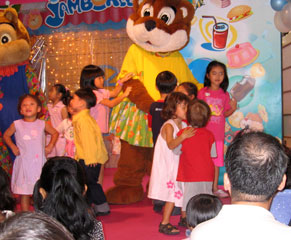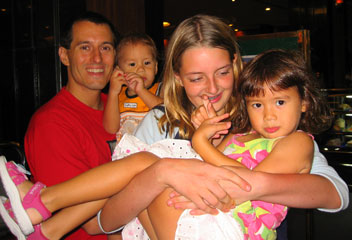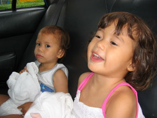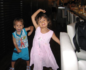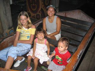 We had thought we were in top notch shape since we have been walking around a lot, but nothing prepared us for Bangkok. The roads are constantly filled with cars, tuk tuks, and motorcycles. It's impossible to cross the roads without a long wait. We have been searching for the perfect mall with a playground for the children. The malls are so big here that we end up getting lost most of the time. Some of them don't even have maps. Our ankles are swollen from all the walking, trekking up stairs with a stroller, and standing while taking the sky train (our main transportation). However, the children are having fun. How can they not? We are always taking them to Magic Land or The Children's Discovery Museum or Jamboree etc... Everyday, when they wake up, they say "I want to go to the playground!" At least in a week, we will meet up with some old friends that we met in Railay. We are moving to their hotel so we can get some help. Their 12 year old daughter loves Kayla and Ryan. Tomorrow, we are taking them to Dreamland, a big amusement park in Bangkok. We are looking forward to all the walking. We miss you and will e-mail you again. Anh July 2 |