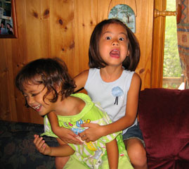 Everything went smoothly with Kayla and Ryan. We discovered the secret of traveling with children. We had a new toy for every hour, a lot crayons, and a DVD player. They slept 5 out of the 9 hours on the plane. Marcia and Joe picked us up from the airport and they brought 2 cars. We couldn't fit all of our luggage in one. And of course, they both had to come because they missed Kayla and Ryan so much :-). My mom, pregnant sister Mai and my niece Sydney came over and surpised us after we got home. My mom brought pho over for us. I really MISSED her cooking. Anyhow, the kids were really excited to see them. They played with Sydney for a long time. I guess they did really miss her too. Now I am just waiting for that one phone call that my sister is going into labor. I am looking forward to being there to watch my nephew come into the world :-). She is due on 9/5. We will be in California for 3 weeks and then go to Washington, Atlanta and Memphis for 5-6 weeks. Currently, we are staying with Marcia and Joe. If you want to reach us, please call us at (650) 941-7512. Can't wait to see everyone. Anh, |