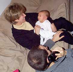Kayla plays with Grandma Marcia while Papa Stephen talks to Great Grandma Lil