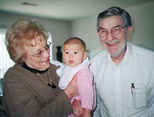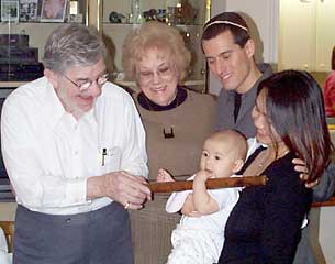 Kayla gets her gg grandmother's rolling pin .............. Betty and Chuck Cohen are all smiles