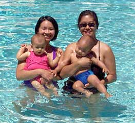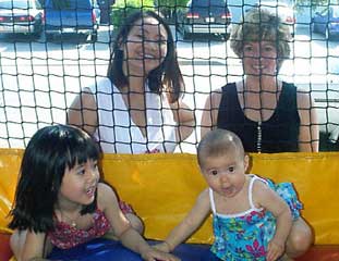 Kayla and Sydney play in the 'jumper' at Sydney's party