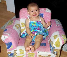 Kayla finds the perfect size chair .............. and plays with Uncle Don