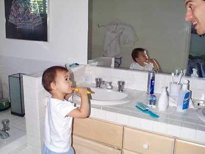 Yes dad, I'm brushing my teeth before bedtime
